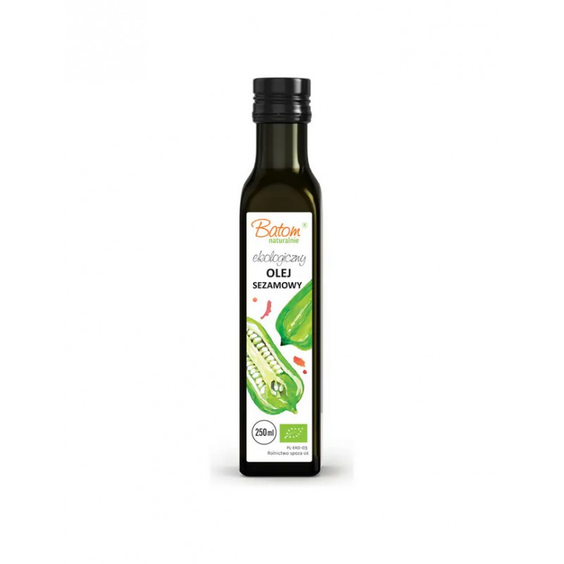 BIO Olej sezamowy nierafinowany. Ekologiczny olej roślinny uzyskany w procesie tłoczenia na zimno nasion sezamu (Sesamum indicum). Najlepszy do stosowania na surowo jako dodatek do surówek, sałatek, pieczonych warzyw. Jako zdrowy tłuszcz nie zawierający węglowodanów jest idealny dla osób odżywiających się zgodnie z zasadami diety KETO.
