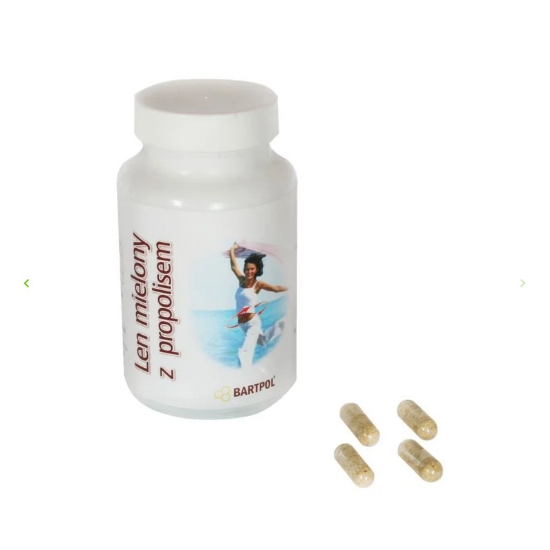 Skład: nasiona lnu odtłuszczone i zmielone 98% - substancja czynna, koncentrat propolisu 2% - substancja czynna. Skład otoczki - żelatyna wieprzowa.
