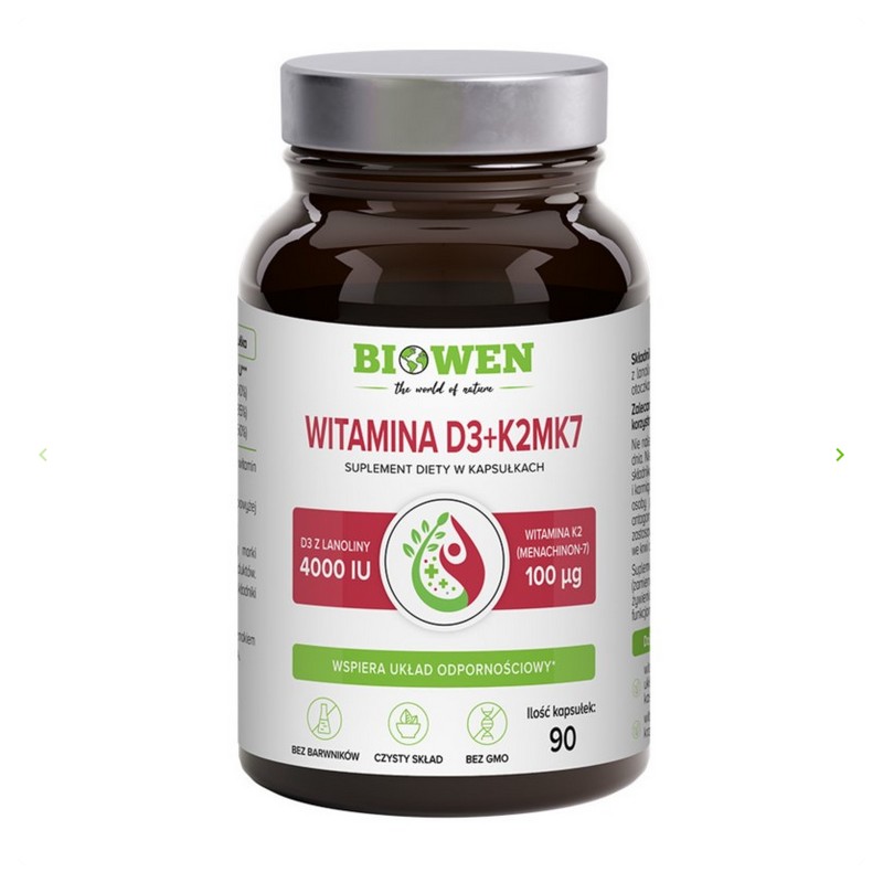 Każda kapsułka dostarcza 4000 IU witaminy D3 oraz 100 µg witaminy K2 (MK-7), które wspólnie wspierają zdrowie kości i układu sercowo-naczyniowego.