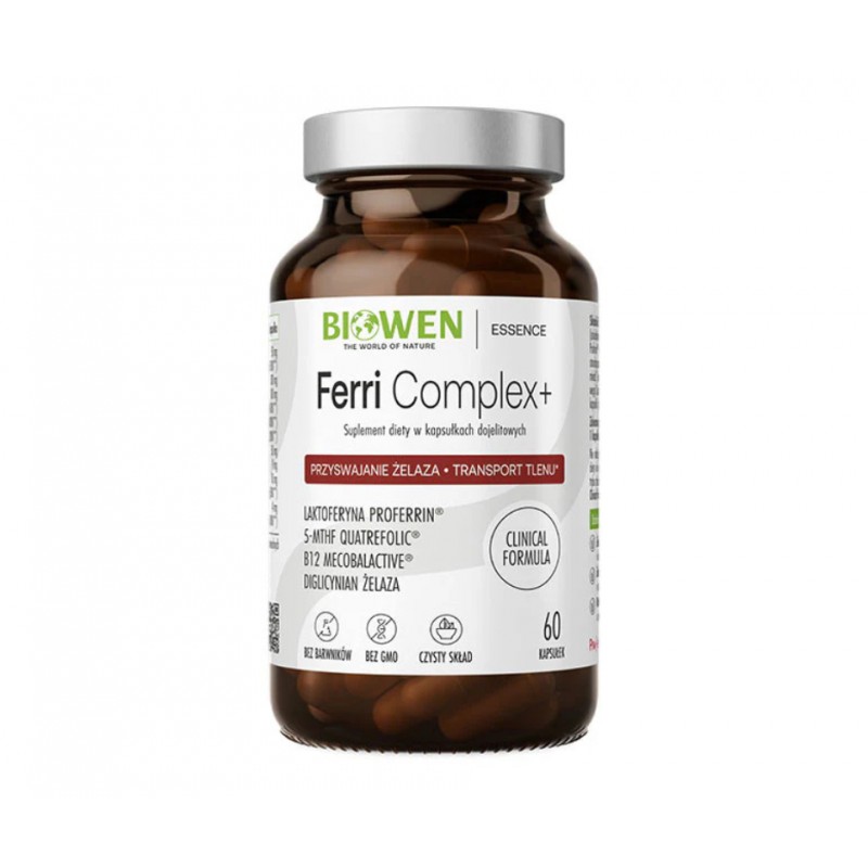 Ferri Complex+ Biowen to zaawansowany suplement diety stworzony z myślą o osobach, które potrzebują skutecznego, a zarazem łagodnego wsparcia w uzupełnianiu żelaza w organizmie.