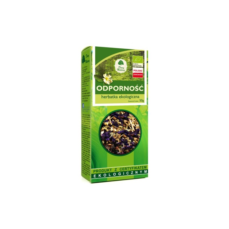 Składniki: owoc tarniny* 30%, owoc bzu*, ziele krwawnika*, tawuły*, jeżówki*, kora wierzby*, kwiat ślazu* w różnych proporcjach.*produkt rolnictwa ekologicznego